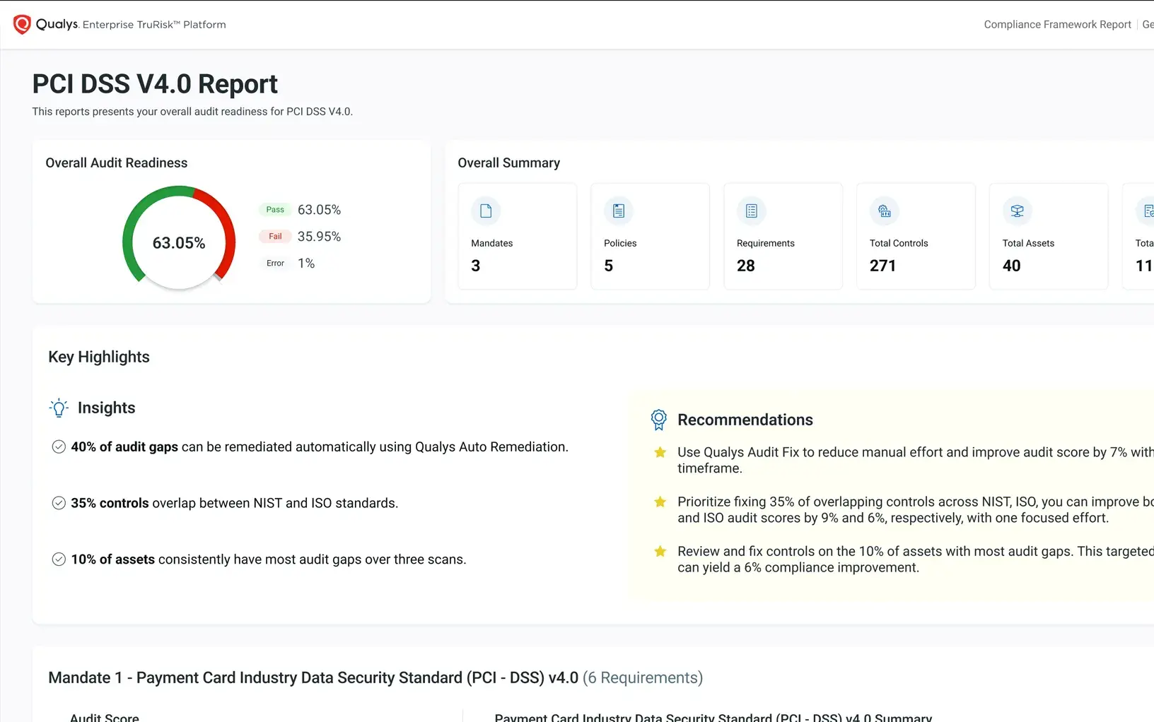 Qualys Policy Audit permite a las organizaciones automatizar la evaluación continua de configuraciones del sistema frente a políticas internas de seguridad y marcos regulatorios como PCI DSS, ISO 27001, NIST, HIPAA, entre otros.