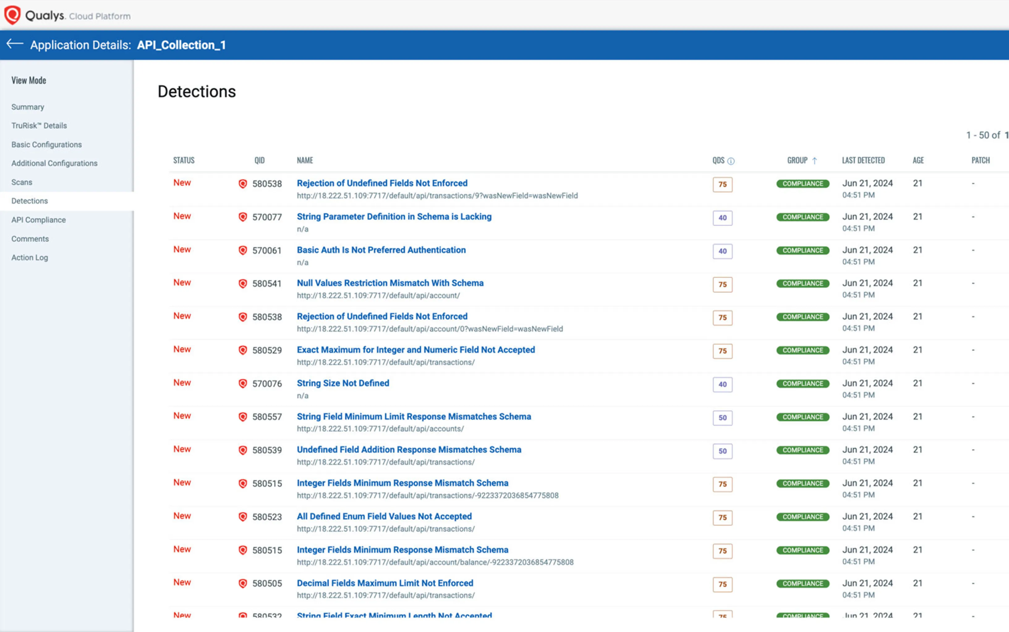 Qualys WAS detecta vulnerabilidades en tiempo de ejecución, OWASP Top 10, OWASP API Top 10, configuraciones incorrectas, exposición de información personal confidencial, malware web, problemas de cumplimiento, desviación de las especificaciones de OpenAPI (OAS v3) y más, a través de pruebas y rastreo automatizados de extremo a extremo.