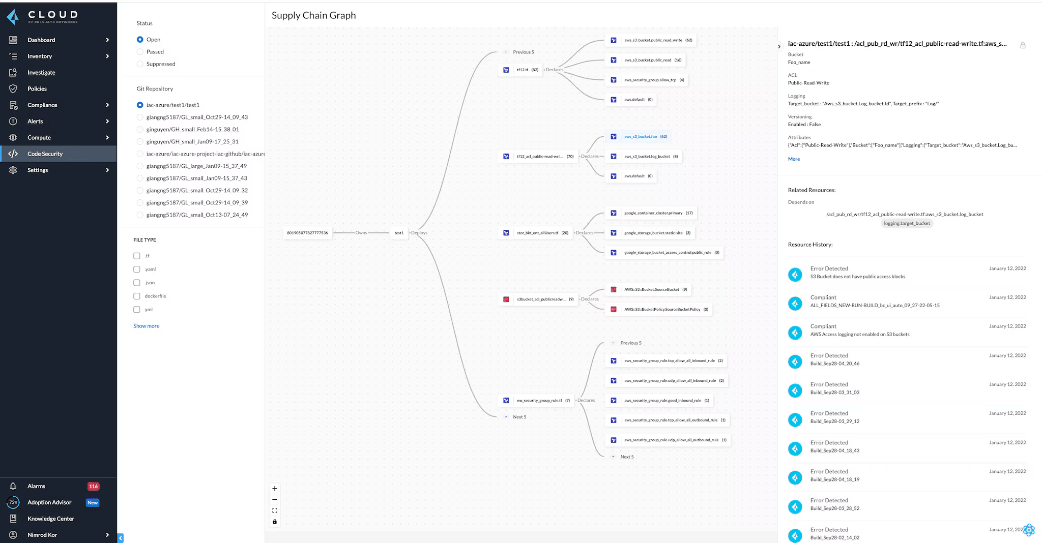Las cadenas de suministro de software nativo en la nube se están convirtiendo cada vez más en un blanco para los atacantes porque les da acceso al código y los secretos que luego utilizan para inyectar código malicioso o pivotar para exfiltrar datos. Prisma Cloud ofrece visibilidad de los componentes de la cadena de suministro y la estrategia para los sistemas de control de versiones (VCS, por sus siglas en inglés) y los ciclos de CI/CD. Aproveche la visualización gráfica de la plataforma para conocer la superficie de ataque y aplique las prácticas recomendadas para mantener a salvo los ciclos.