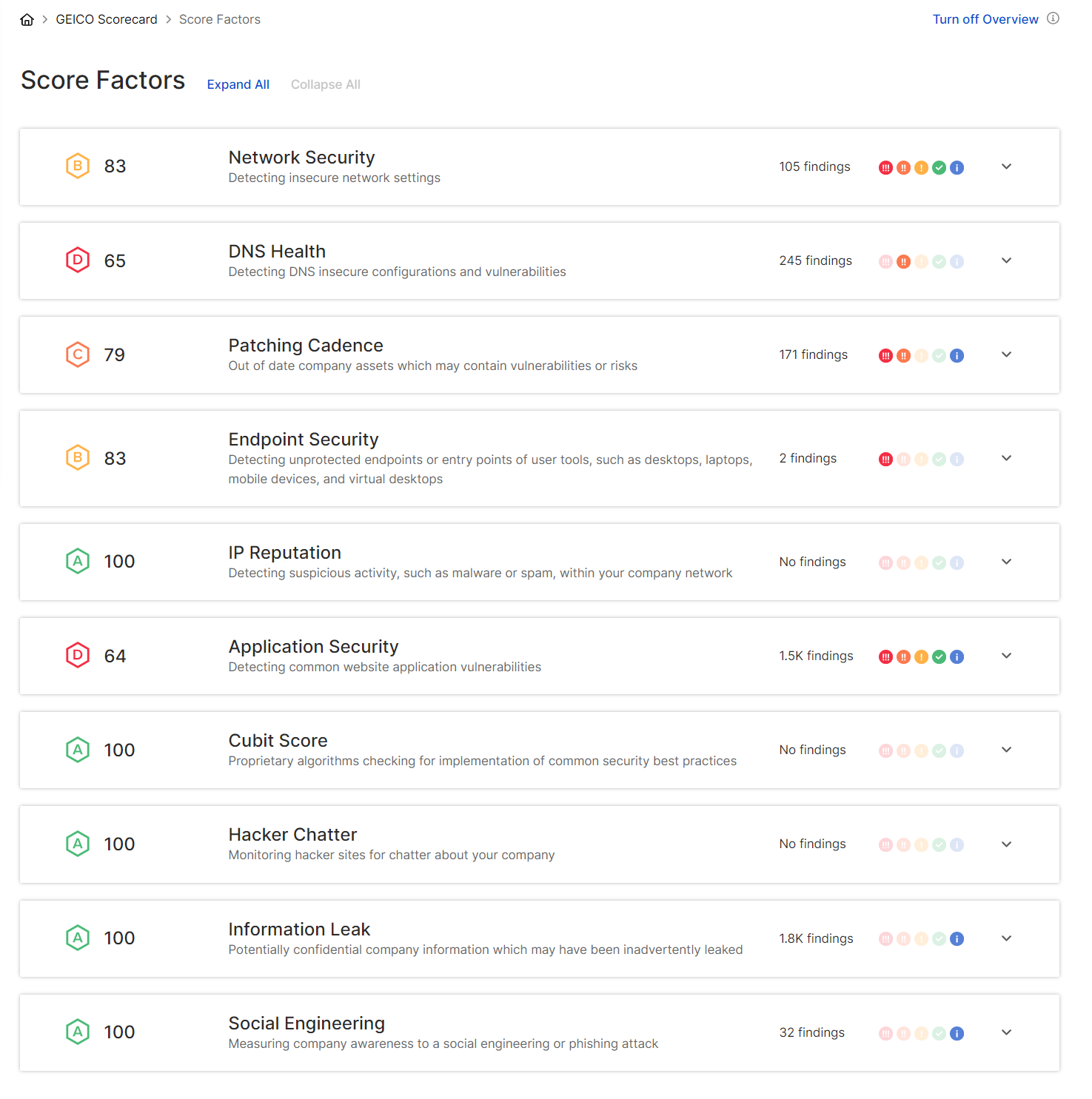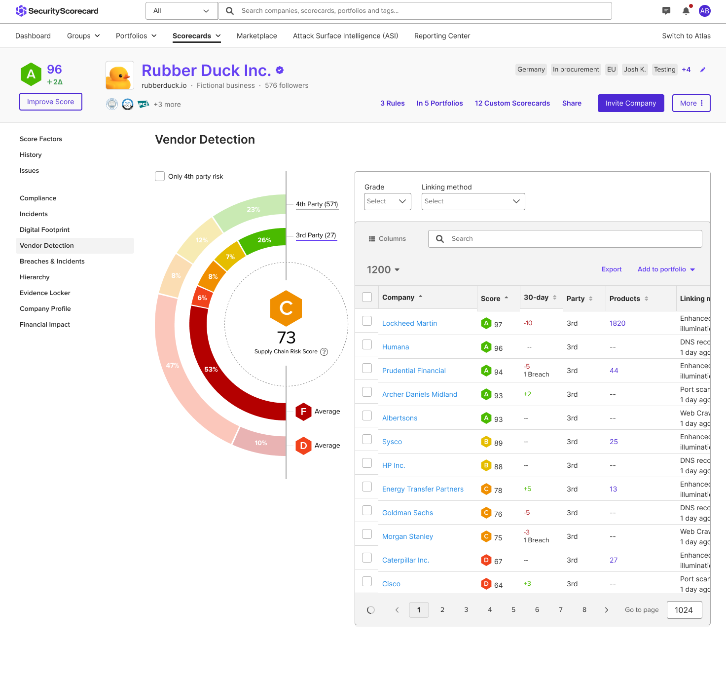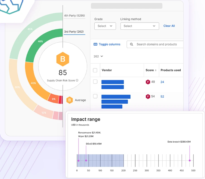 Mitiga los riesgos de seguridad de terceros utilizando el sistema de calificación A-F de SecurityScorecard para obtener información instantánea y obtener la mayor profundidad y amplitud posibles de visibilidad de sobre el riesgo cibernético de la cadena de suministro, con ayuda de análisis potentes impulsados por inteligencia artificial.