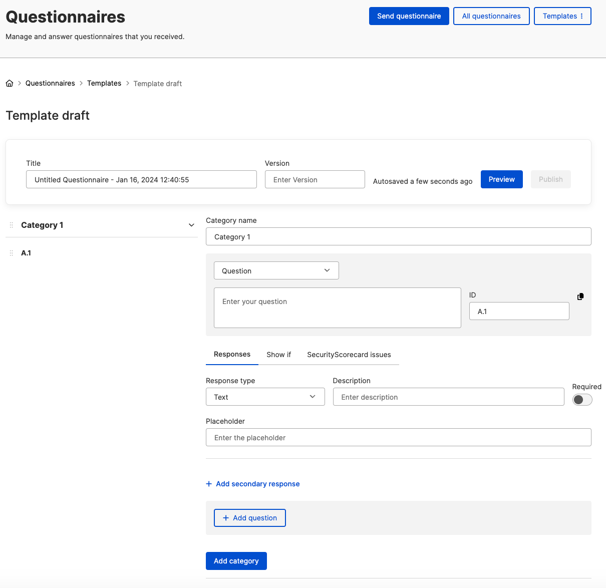 Cree cuestionarios basados en las necesidades de su organización utilizando plantillas estándar o personalizadas.